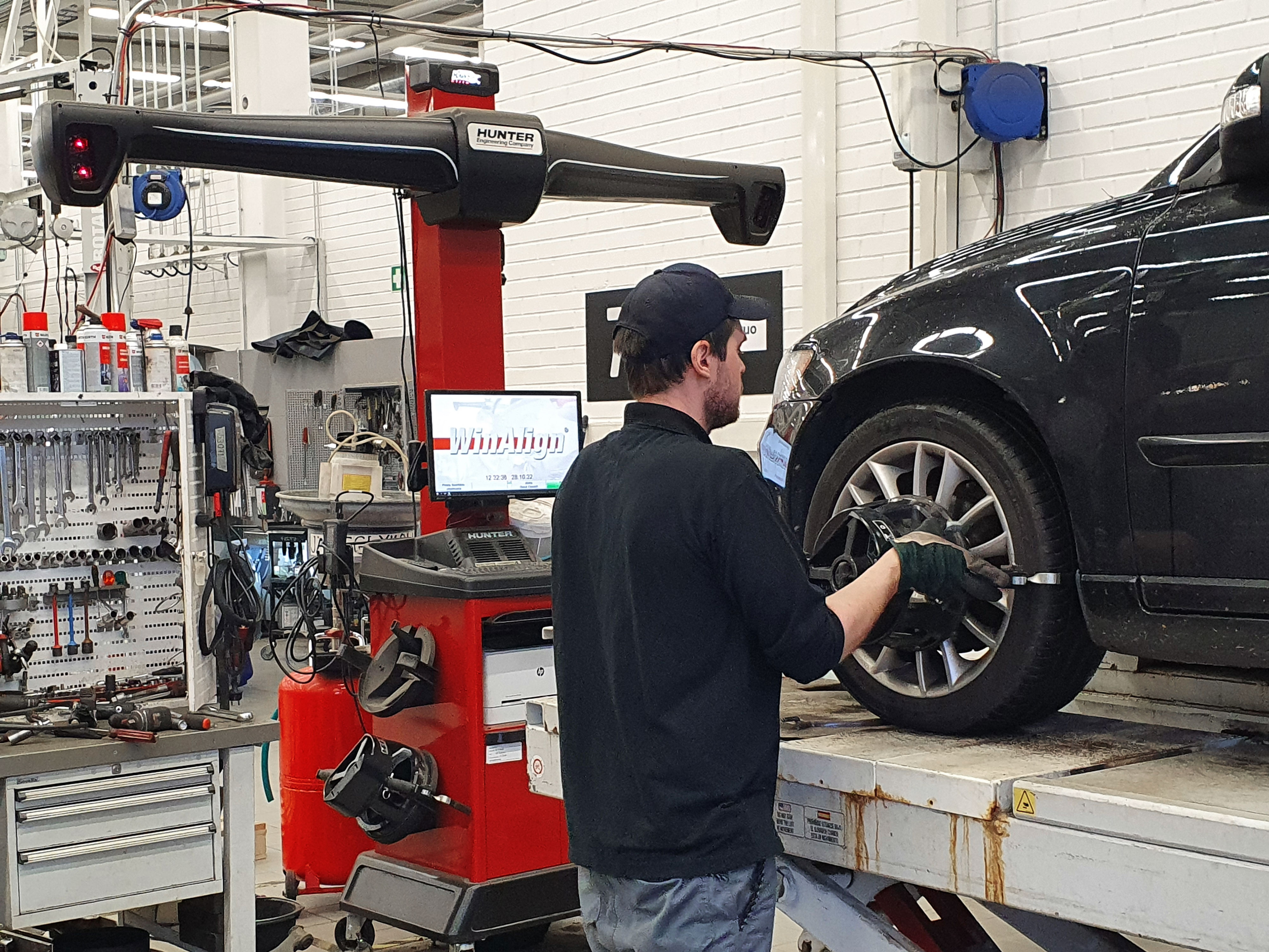 "We have had a Hunter wheel alignment device in use for about 15 years. We have been satisfied with Hunter and a couple of years ago we switched to the latest technology, i.e. HawkEye Elite equipment. At the moment, we do about 600 alignments a year. Wheel alignment work is planned and scheduled flexibly in connection with possible maintenance, as a rule, to one mechanic who is dedicated to the task and the use of the device." (Antti Aali, head of technical service)